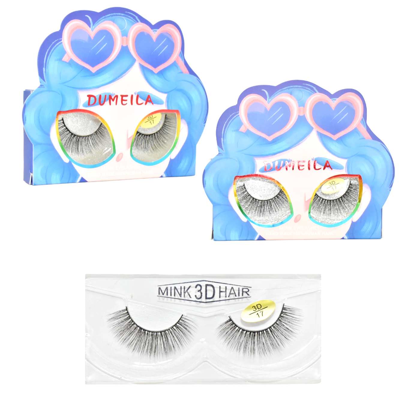 Pestaña artificial Dumelia presentación de mujer con cabello hongo